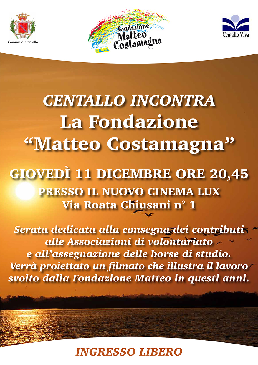 Contributi Fondazione Matteo Costamagna La Fondazione Matteo Costamagna, com’è ormai consuetudine, vi dà appuntamento giovedì 11 dicembre alle ore 20,45 presso il Nuovo Cinema Lux di Centallo in Via Roata Chiusani n° 1 , con ingresso libero.